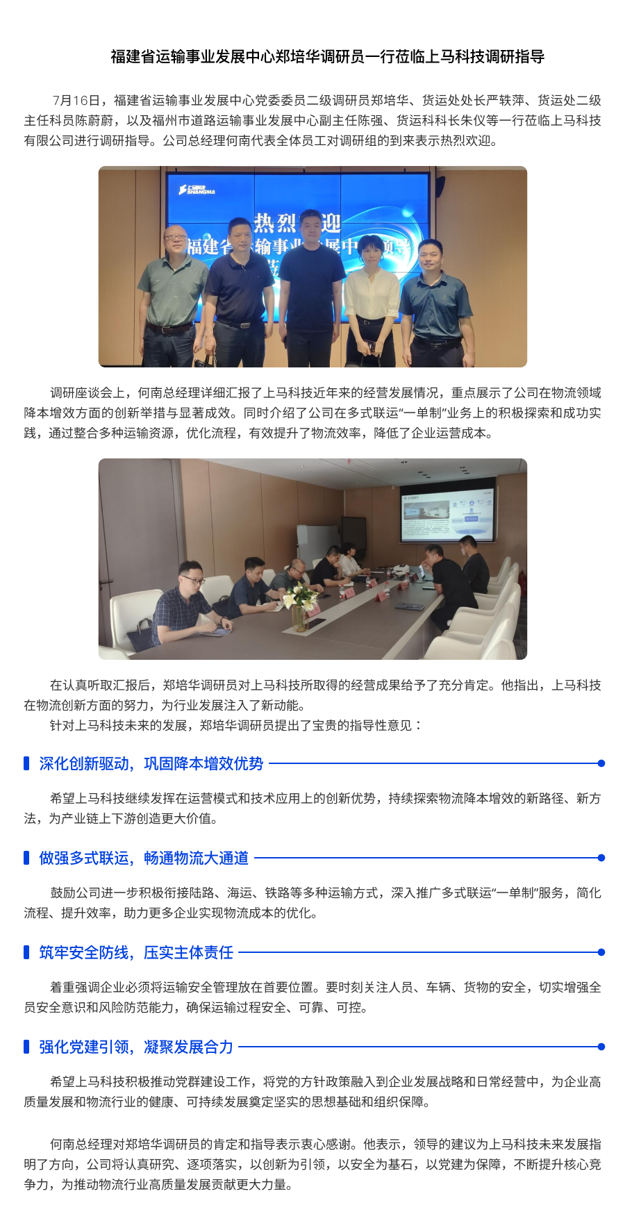 企业动态|福建省运输事业发展中心郑培华调研员一行莅临上马科技调研指导